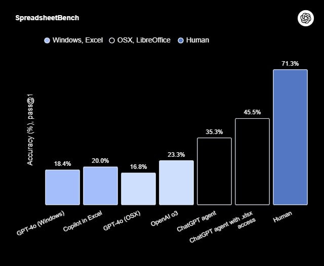 • Đạt 45.5%, trong khi Copilot in Excel chỉ đạt 20%