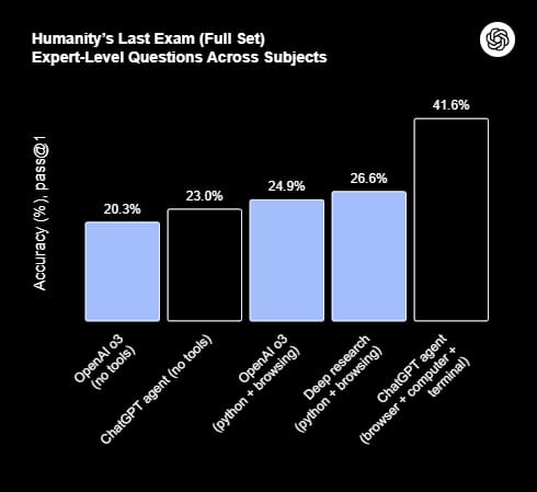 • ChatGPT Agent đạt 27.4% độ chính xác→ Cao hơn GPT-4o và các mô hình trước đó